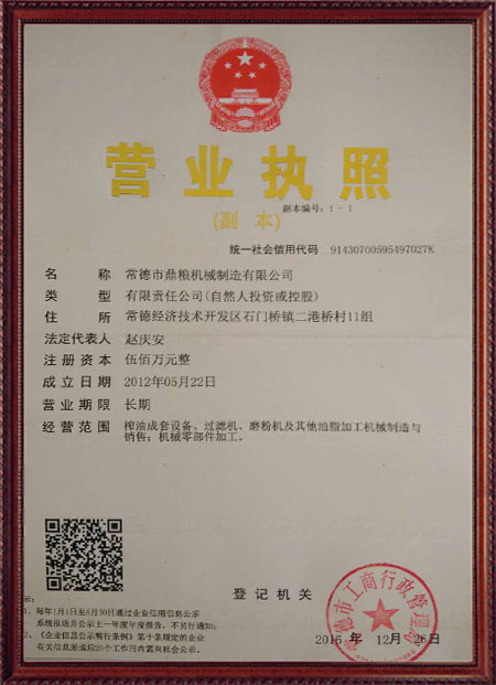 企業(yè)堅持“質(zhì)量、口碑就是我們的生命”的原則,嚴(yán)格執(zhí)行質(zhì)量標(biāo)準(zhǔn)檢驗體系。生產(chǎn)的"鼎糧"牌系列產(chǎn)品,產(chǎn)品質(zhì)量優(yōu),性價比高,深受廣大新老客戶的青睞,通過了各級部門的鑒定認可,立式、臥式液壓榨油機均榮獲農(nóng)機推廣證。